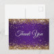 Faux Sparkly Gold Glitter Royal Purple Thank You Postcard
