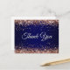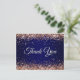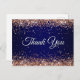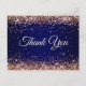 Faux Sparkly Rose Gold Glitter Navy Blue Thank You Postcard
