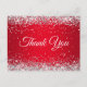 Faux Sparkly Silver Glitter Bright Red Thank You Postcard