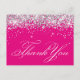 Faux Sparkly Silver Glitter Hot Pink Thank You Postcard