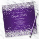 Faux Sparkly Silver Glitter Royal Purple Ombre Invitation