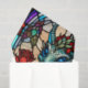 This colourful faux stained glass tissue paper features bright teal dragons and red roses. This can be coordinated with matching gift and wine bags.