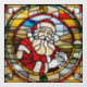 Bring the magic of Christmas to your windows with the Faux Stained-Glass Santa Claus Large Window Cling. This festive design features a jolly Santa Claus, dressed in his iconic red suit, holding a sack of gifts, surrounded by sparkling snowflakes and holiday cheer. The AI-generated image mimics the vibrant colours and intricate details of traditional stained glass, creating a bright and cheerful display as light shines through, spreading Christmas joy throughout your space.