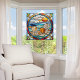 This AI-generated image blends modern creativity with the timeless elegance of stained glass, delivering intricate details and bold colours. Crafted from static cling material, it easily adheres to glass surfaces, is repositionable, and leaves no residue—making it perfect for sliding glass doors, windows, or storefront displays.