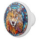 faux stained glass wolf Ceramic Knob