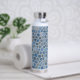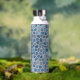 This water bottle features a pattern of mosaic faux stone in shades of blue and grey.