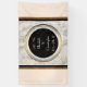 Personalised wedding banner with an elegant FAUX marble alabaster background texture in the centre. Taupe / tan and cream colours blending together, creating interesting patterns for a classy modern look. A black and gold circle with a gold gradient border with your name and initial personalised inside.
