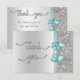 Faux Teal Bow Silver Sequins Thank You Wedding Card