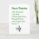 A funny thank you card, featuring a bad poem and illustration, about appreciation that should last even longer than "the real thing" (think, silk flowers). Our character, tillie, looks a little confused and is holding one of those "inspected my" tags.
