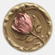 Faux wax seal sticker with a pink rose flower on a gold seal. Use for important invitations or valentines.