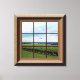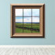 Features a faux wood framed window with a view of a vineyard. The frame continues around the sides of the canvas. View additional images for a closer look.