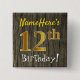 Faux Wood, Faux Gold 12th Birthday + Custom Name 15 Cm Square Badge