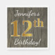 Faux Wood, Faux Gold 12th Birthday + Custom Name Napkin