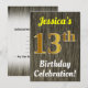 This birthday party invitation design features a message like "Jessica’s 13th Birthday Celebration!", where the name can be customised, and where the number "13th" has a faux gold-like appearance. It also features a rustic faux wood appearance background. The event details on the back can be personalised. It could be used to invite people to somebody’s thirteenth birthday celebration or birthday party. [~Z0000119]