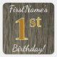 Faux Wood, Faux Gold 1st Birthday + Custom Name Square Sticker