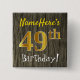 Faux Wood, Faux Gold 49th Birthday + Custom Name 15 Cm Square Badge