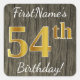 Faux Wood, Faux Gold 54th Birthday + Custom Name Square Sticker