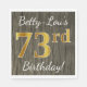 This simple paper napkin design features a message like "Betty-Lou’s 73rd Birthday!", with the "73rd" having a faux gold-like appearance, on a faux wood appearance background. The name can be personalised. It could be used at a birthday party for somebody who is celebrating their seventy third birthday. [~Z0000084]