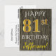 Faux Wood, Faux Gold 81st Birthday + Custom Name Postcard