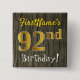 Faux Wood, Faux Gold 92nd Birthday + Custom Name 15 Cm Square Badge