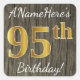 Faux Wood, Faux Gold 95th Birthday + Custom Name Square Sticker