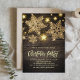 Faux Wood Gold Glitter Snowflakes Christmas Party Invitation