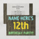 Faux Wood, Painted Text Look, 12th Birthday + Name Invitation