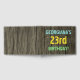 This fun birthday guestbook design features a message like "GEORGIANA’S 23rd BIRTHDAY!", where the name can be personalised. The background features a rustic, brown, faux wood grain appearance pattern. The customisable message text features colours like blue, yellow, and green, and it has an appearance inspired by that of painted, stenciled lettering. A birthday-themed guest book like this might be used so that guests can leave messages at a party being held for somebody who is celebrating their twenty third birthday. [~Z0000320]
