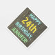 This fun birthday party napkin design features a message like "HAPPY 24th BIRTHDAY, JENNIFER!", where the name can be personalised. The background features a rustic, brown, faux wood grain appearance pattern. The customisable message text features colours like blue, yellow, and green, and it has an appearance inspired by that of painted, stenciled lettering. Napkins like these could perhaps be used at a birthday party for somebody who is celebrating their twenty fourth birthday. [~Z0000292]