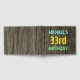 This fun birthday guestbook design features a message like "MICHAEL’S 33rd BIRTHDAY!", where the name can be personalised. The background features a rustic, brown, faux wood grain appearance pattern. The customisable message text features colours like blue, yellow, and green, and it has an appearance inspired by that of painted, stenciled lettering. A birthday-themed guest book like this might be used at a party being held for somebody who is celebrating their thirty third birthday, so that guests and attendees can leave messages. [~Z0000320]
