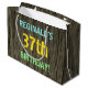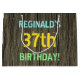 This fun birthday gift bag design features a message like "REGINALD’S 37th BIRTHDAY!", where the name can be personalised. The background features a rustic, brown, faux wood grain appearance pattern. The customisable message text features colours like blue, yellow, and green, and it has an appearance inspired by that of painted, stenciled lettering. A birthday-themed gift bag like this might be a silly way to give a gift to somebody who is celebrating their thirty seventh birthday. [~Z0000319]