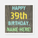 Faux Wood, Painted Text Look, 39th Birthday + Name Napkin