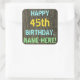 Faux Wood, Painted Text Look, 45th Birthday + Name Square Sticker