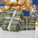 This fun birthday-themed wrapping paper design features a message like "HAPPY 57th BIRTHDAY, NAME-HERE!", where the name can be personalised. The background features a rustic, brown, faux wood grain appearance pattern. The customisable message text features colours like blue, yellow, and green, and it has an appearance inspired by that of painted, stenciled lettering. Wrapping paper like this could perhaps be used when wrapping birthday gifts being given to somebody who is celebrating their fifty seventh birthday. [~Z0000293]