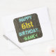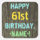 Faux Wood, Painted Text Look, 61st Birthday + Name Square Sticker