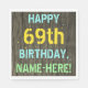 Faux Wood, Painted Text Look, 69th Birthday + Name Napkin