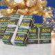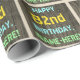 This fun birthday-themed wrapping paper design features a message like "HAPPY 82nd BIRTHDAY, NAME-HERE!", where the name can be personalised. The background features a rustic, brown, faux wood grain appearance pattern. The customisable message text features colours like blue, yellow, and green, and it has an appearance inspired by that of painted, stenciled lettering. Wrapping paper like this could perhaps be used when wrapping birthday gifts being given to somebody who is celebrating their eighty second birthday. [~Z0000293]