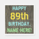 Faux Wood, Painted Text Look, 89th Birthday + Name Napkin