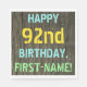Faux Wood, Painted Text Look, 92nd Birthday + Name Napkin