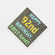 This fun birthday party napkin design features a message like "HAPPY 92nd BIRTHDAY, FIRST-NAME!", where the name can be personalised. The background features a rustic, brown, faux wood grain appearance pattern. The customisable message text features colours like blue, yellow, and green, and it has an appearance inspired by that of painted, stenciled lettering. Napkins like these could perhaps be used at a birthday party for somebody who is celebrating their ninety second birthday. [~Z0000292]