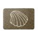 A seashell decorates this stylish faux wood bath mat. The design is from original art.