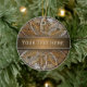 Faux Wood Sunflower Photo Ceramic Round Ornaments