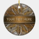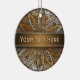 Wooden Sunflower © Sunny Mars Designs. Cool, stylish, trendy, modern, unique custom printed round ceramic ornament with a beautiful faux printed photo of a wooden textured sunflower design.
