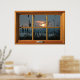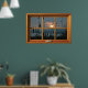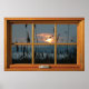 Faux Wooden Window Illusion - Flock of Birds Poster