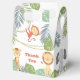 Featuring a flat design of an adorable lion, leopard, baby elephant, giraffe, zebra and monkey, the Favor Box will be a great addition to your child's party.