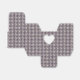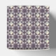 Quilt block in purple and white "spool" pattern. Eight spools rotate around a center of dark purple. A purple flower print is the "thread" on the spool. With no frame for each block, the pattern gives a kaleidoscope effect.