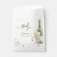 Favour Bags for a bridal shower in a delicate, elegant, minimalist style with a charming watercolor illustration of delicate twigs with green leaves, a wine bottle and glasses.