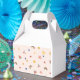 magine a charming favour box adorned with a delightful trio of designs that evoke a sense of sweetness and joy. The box itself is shaped like a classic gift box, with a smooth, glossy surface that hints at the treasures within.