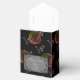 Embrace the elegance of black, Crimson and purple autumn roses, as we relish the beauty of the macabre and the allure of the unknown. This enchanting wedding favour box is a dark floral pattern of crimson antique roses, purples and burnt oranges on black. The front has the couples names and wedding date embellished with ornate black gothic flourishes. This favour box is darkly lovely and an enchanting favour from your unique wedding.