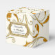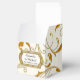 NOTE: This is a flat printed image, there are no jewels, raised layers or gold metallic elements. COLOR PALETTE: black, soft creamy white with faux gold metallic glitter look DESIGN COLLECTION: Matching formal dinner reception, bridal shower or rehearsal dinner favour boxes for easy decor enhancement. Inspired by Old Hollywood and her heyday glam era, this wedding invitation set is perfect for elegant, sophisticated, modern wedding celebrations. A classic, beautiful swirling leaf damask style pattern has been graphically designed to look like a silver edged gold glittery embroidered lace design with a golden buckle that has a diamond border over faux glitter. A contemporary typography layout for your invite wording and information updates this vintage retro design. A gorgeous, unique and pretty design for the most discriminating bride.